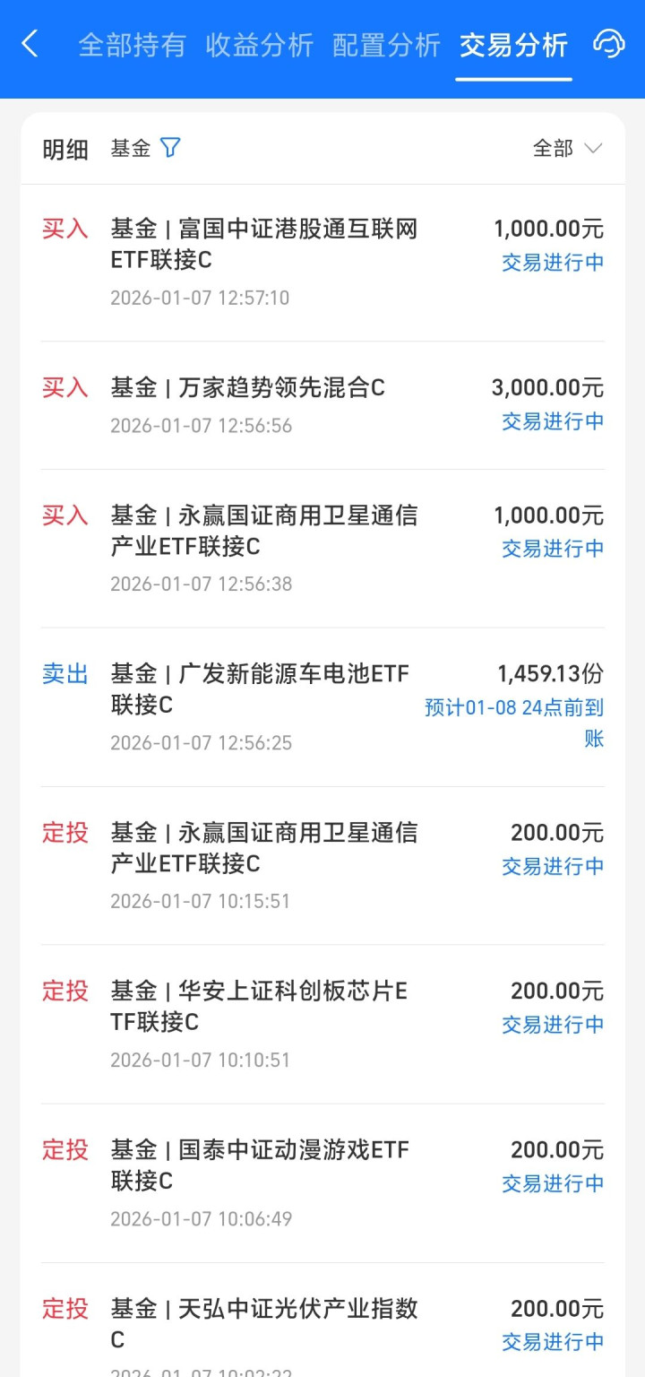 兄弟姐妹们下午好,今天我有基金操作,加仓有色、卫星和港股,减点电池,定投光伏、游戏卫星和芯片继续。